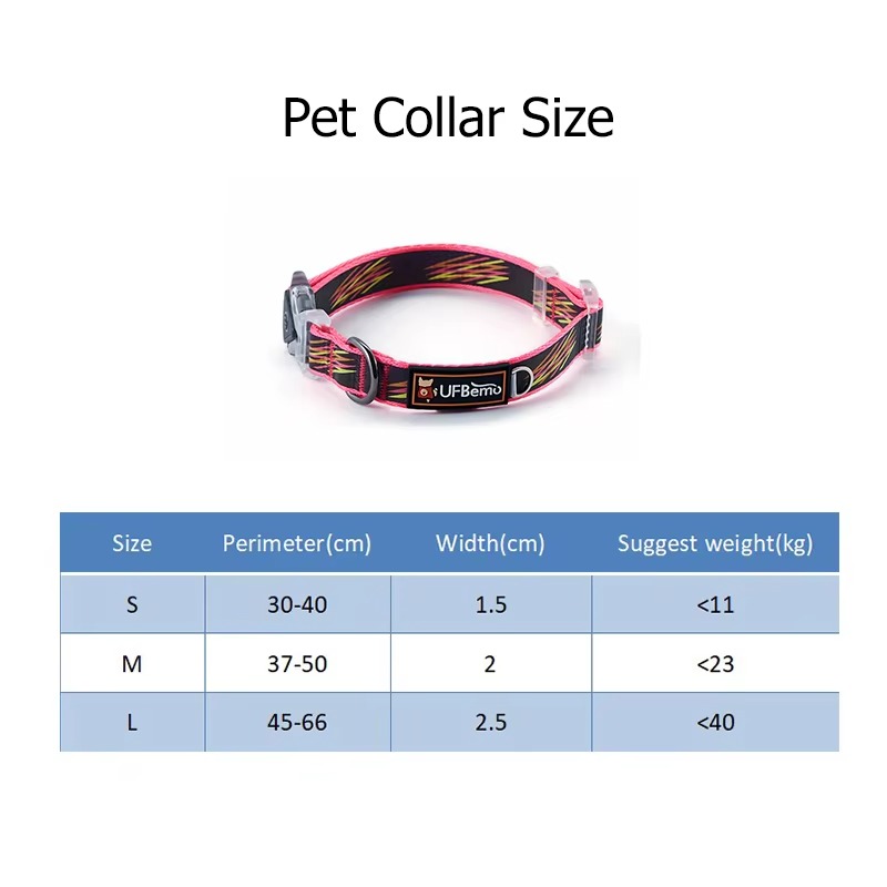 Fitting: Adjust the collar to fit snugly but comfortably around your pet's neck, allowing enough space for two fingers to fit between the collar and the neck.