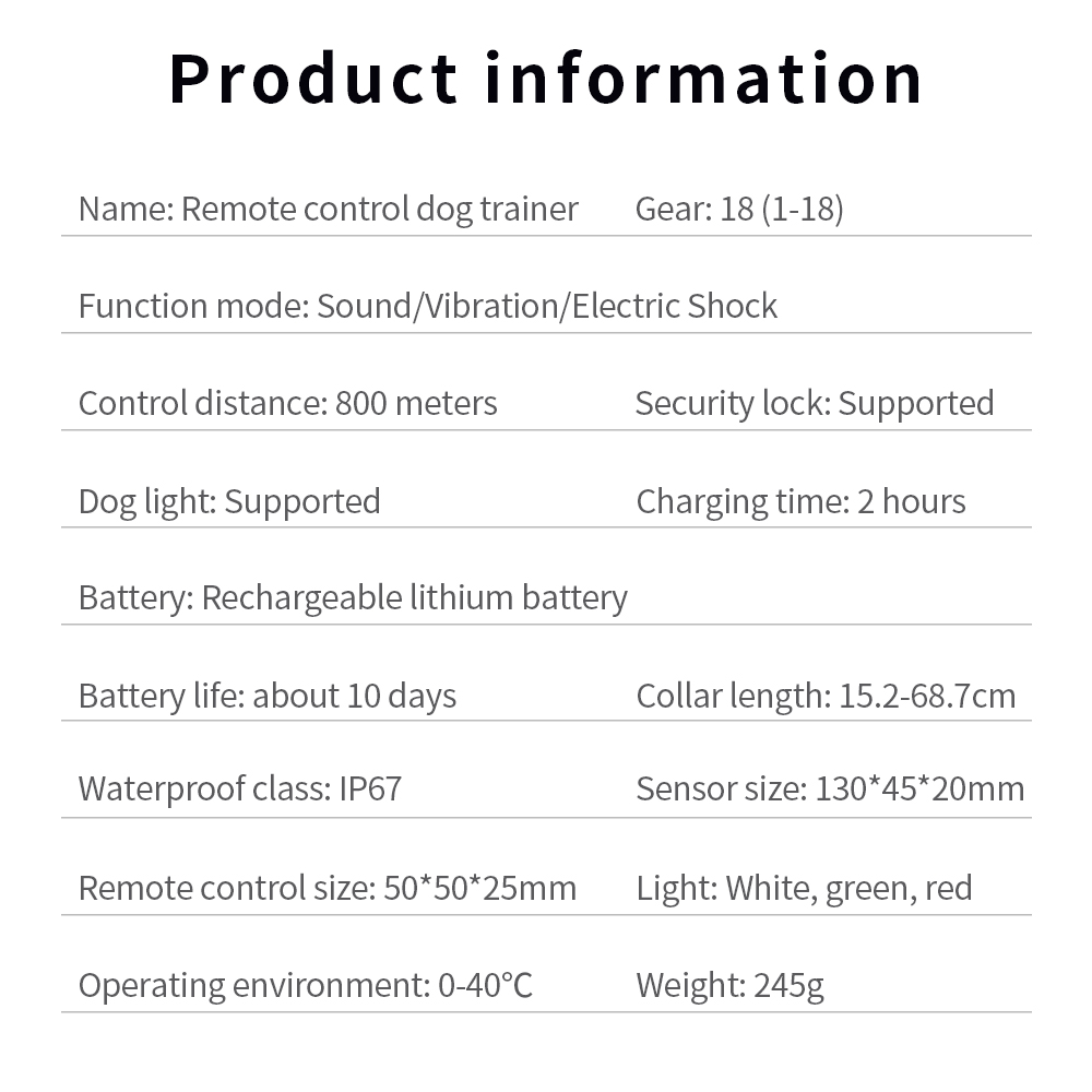 | Product Name | 800 Meter Voice Remote Control Dog Training Collar |