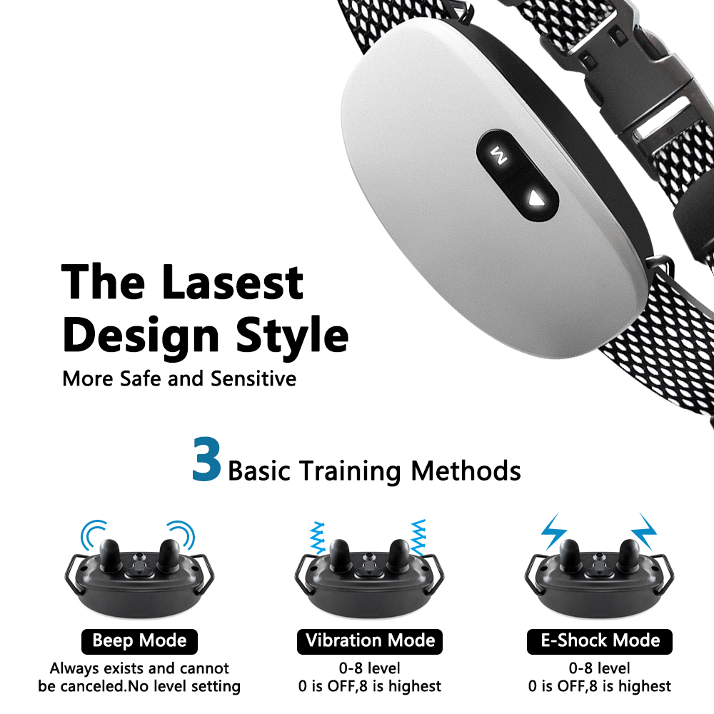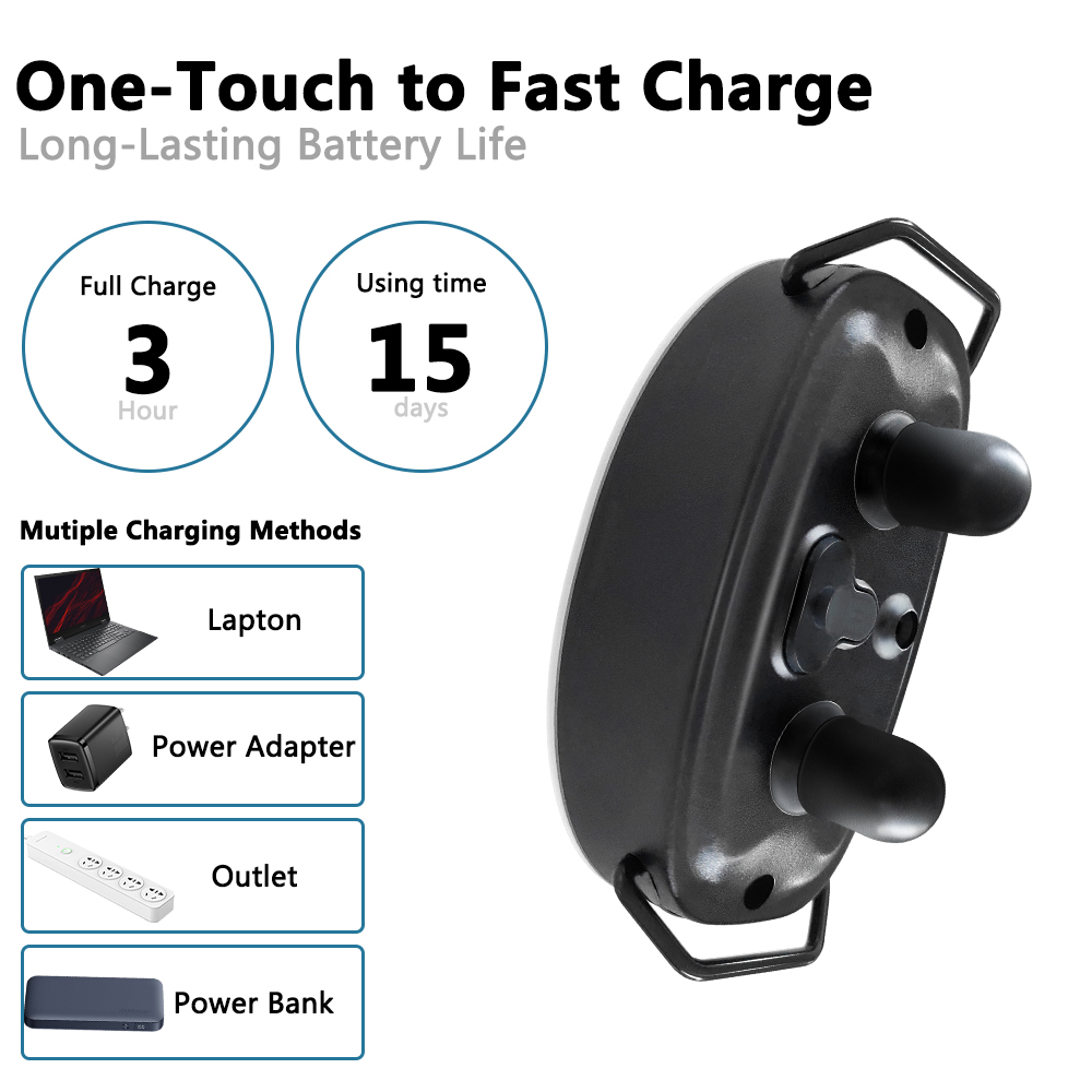 - Training Modes: Vibration and static shock stimulation for versatile training commands.