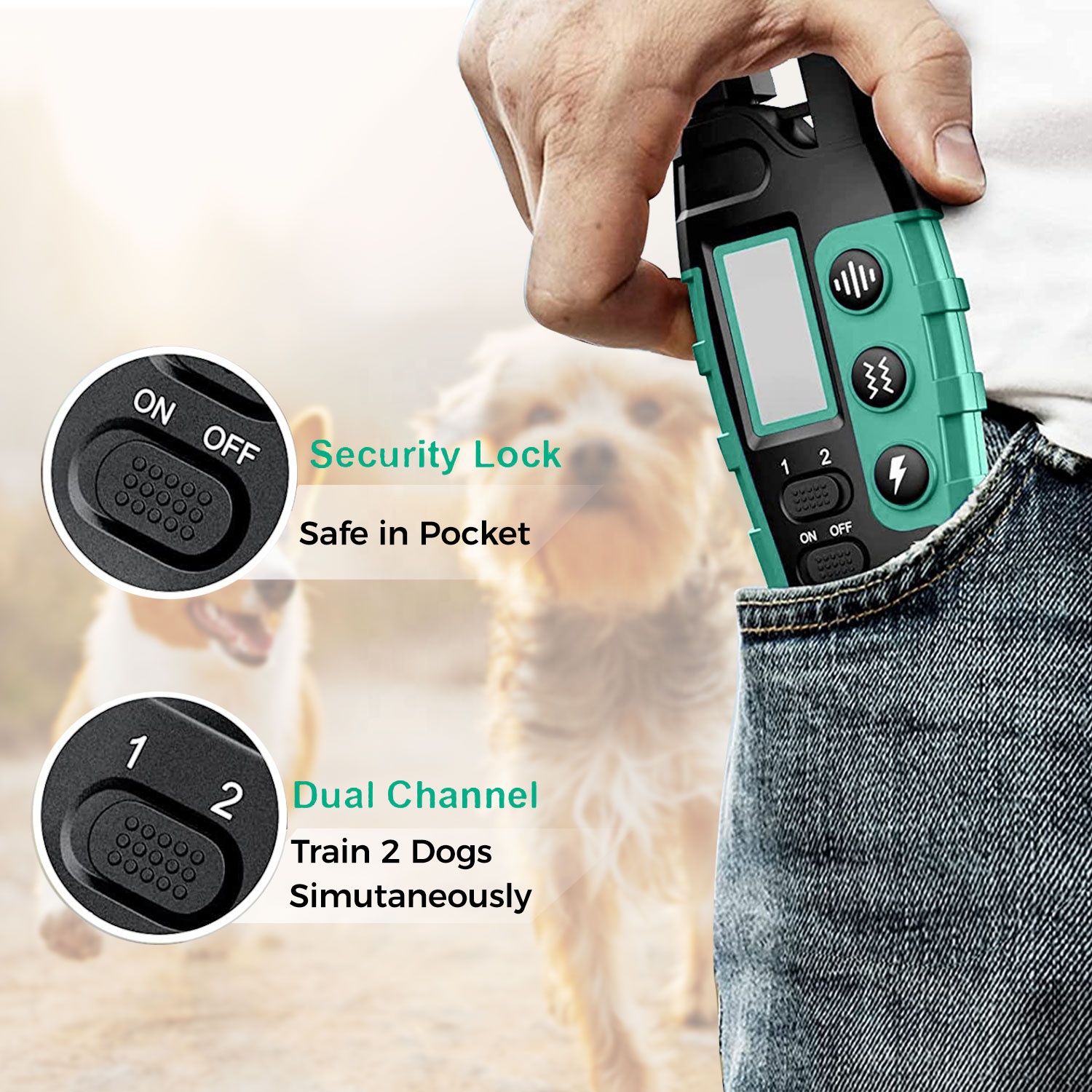 IP67 Waterproof Rating: The collar receiver is fully sealed, protecting it from rain, splashes, and even temporary immersion in water, ensuring reliability during all training environments.