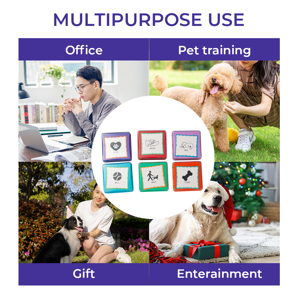 - Pet Communication Training: Teach your dog to "talk" by recording words like "Food," "Outside," "Play," or "Water." Place the buttons on a mat, and through consistent training, your pet can learn to press the corresponding button to express its needs.
