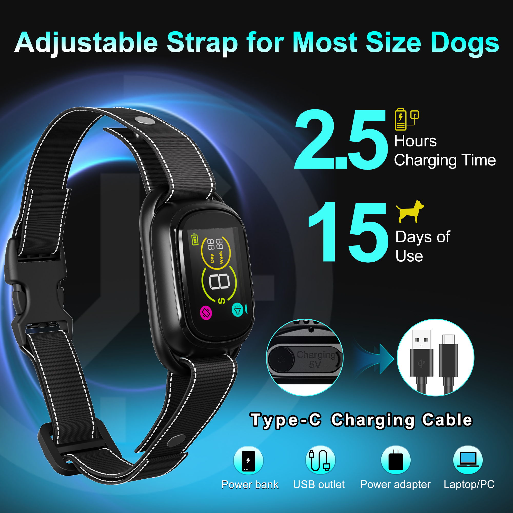 - Progressive Correction: Automatically adjusts the correction level based on the frequency of barking, starting low and increasing only if barking persists.