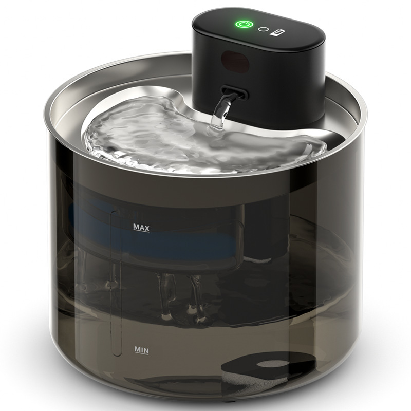 Power On: Connect the USB power adapter or place the fountain on its wireless charging dock. The unit should automatically start circulating water.