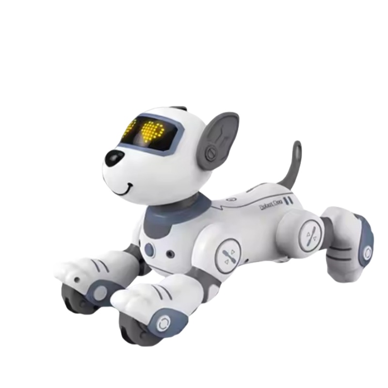 Equipped with multiple motors, the robot dog can perform a variety of actions, including walking, dancing, sitting, and performing stunts. The remote control allows for precise directional control (forward, backward, left, right).