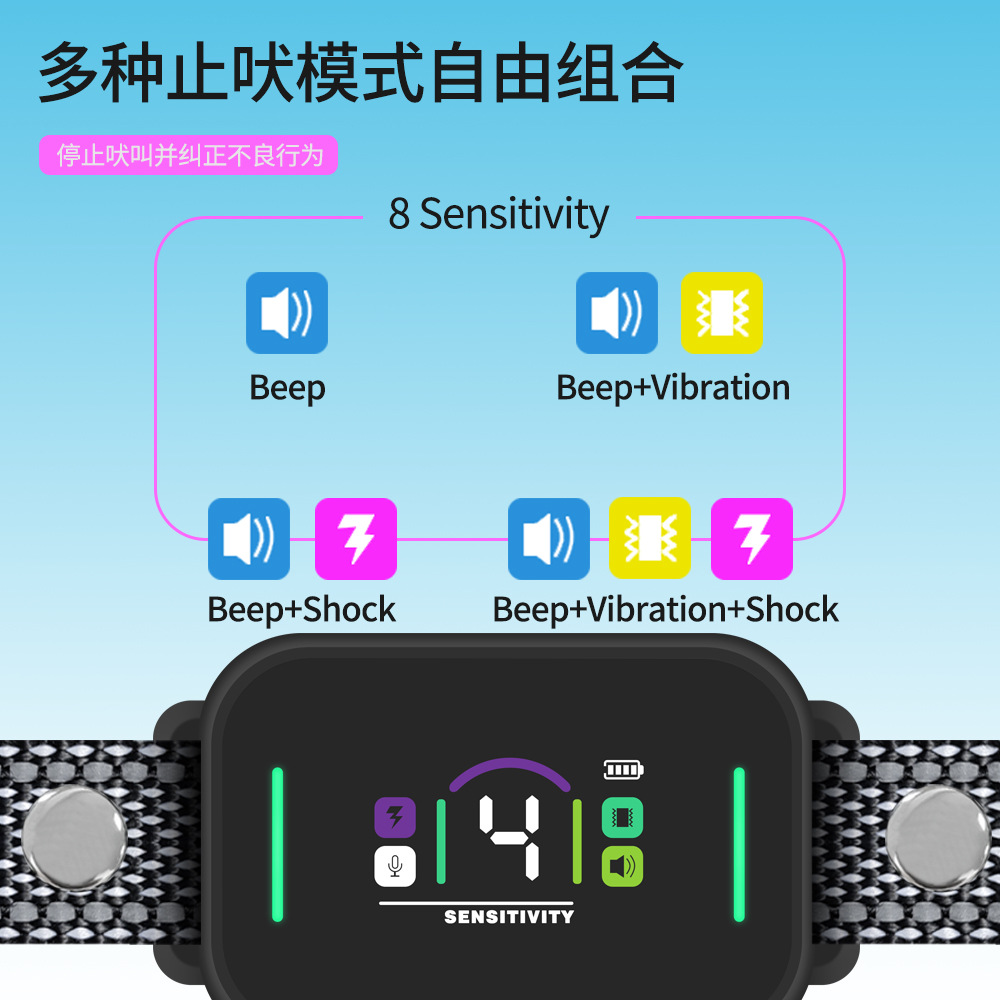 Vibration Mode: A humane alternative to static shock, providing a physical tap to interrupt barking without causing pain.