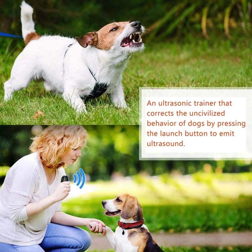 This is a handheld, portable pet training device designed to safely and effectively deter unwanted dog behaviors, such as excessive barking. It utilizes a combination of ultrasonic sound waves and a bright LED flashlight to get your dog's attention without causing harm. It's an ideal tool for pet owners looking for a humane training aid.