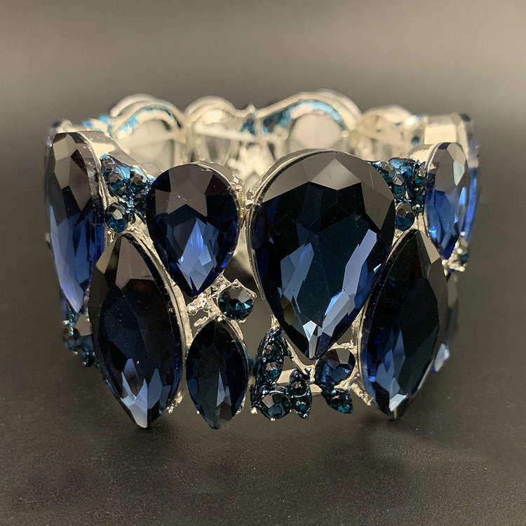 QS 2263 Retro Luxury Big Rhinestone AB Crystal Elastic Bracelet