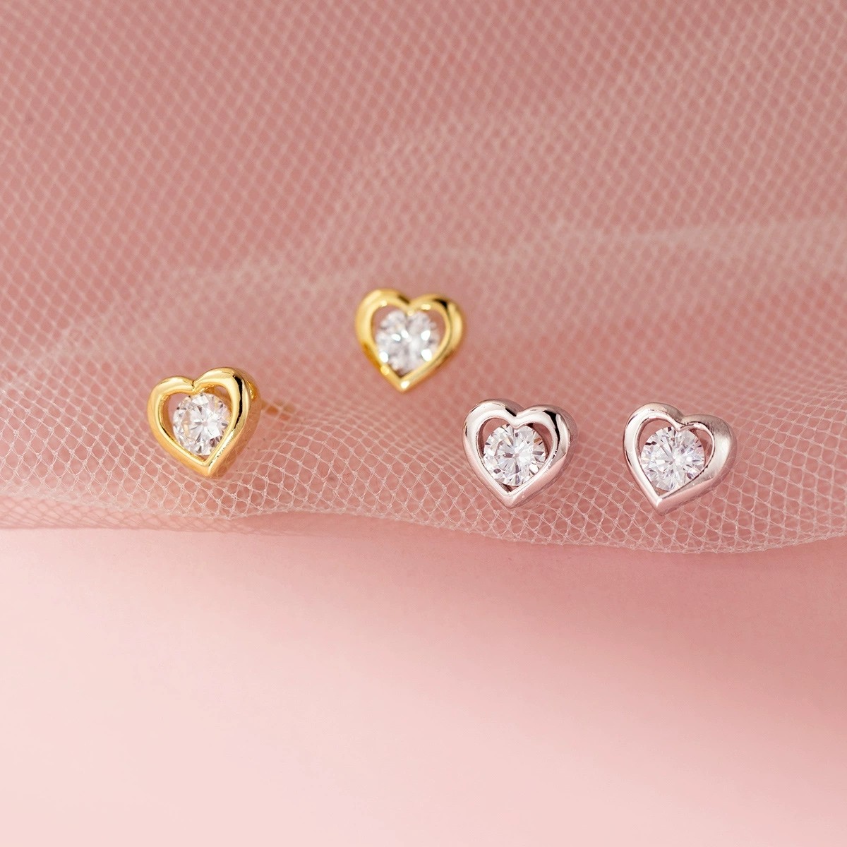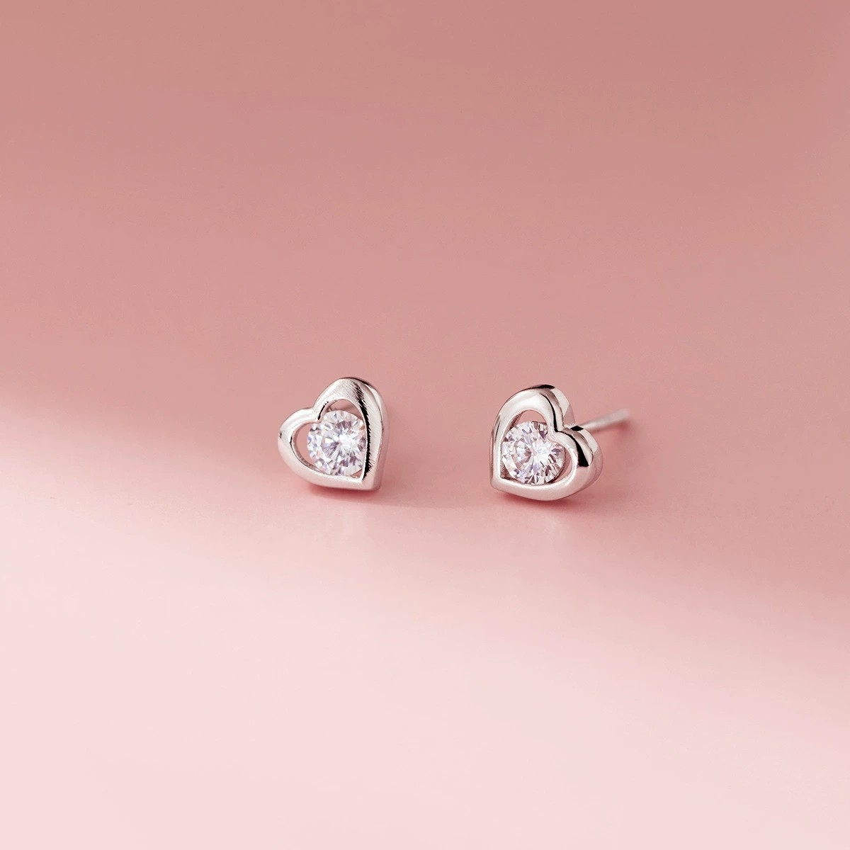 Long-tail Keywords: small heart zircon stud earrings for girls, wholesale 925 silver cute earrings, fashion minimalist zircon earrings for women