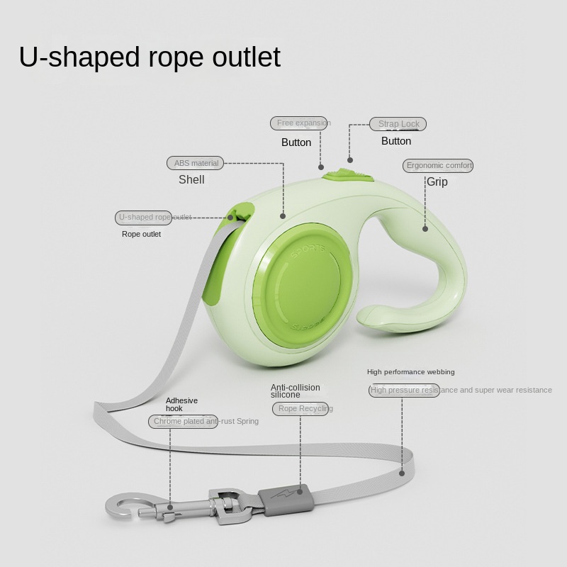 - Retracting: Press the button to smoothly retract the leash back into the housing.