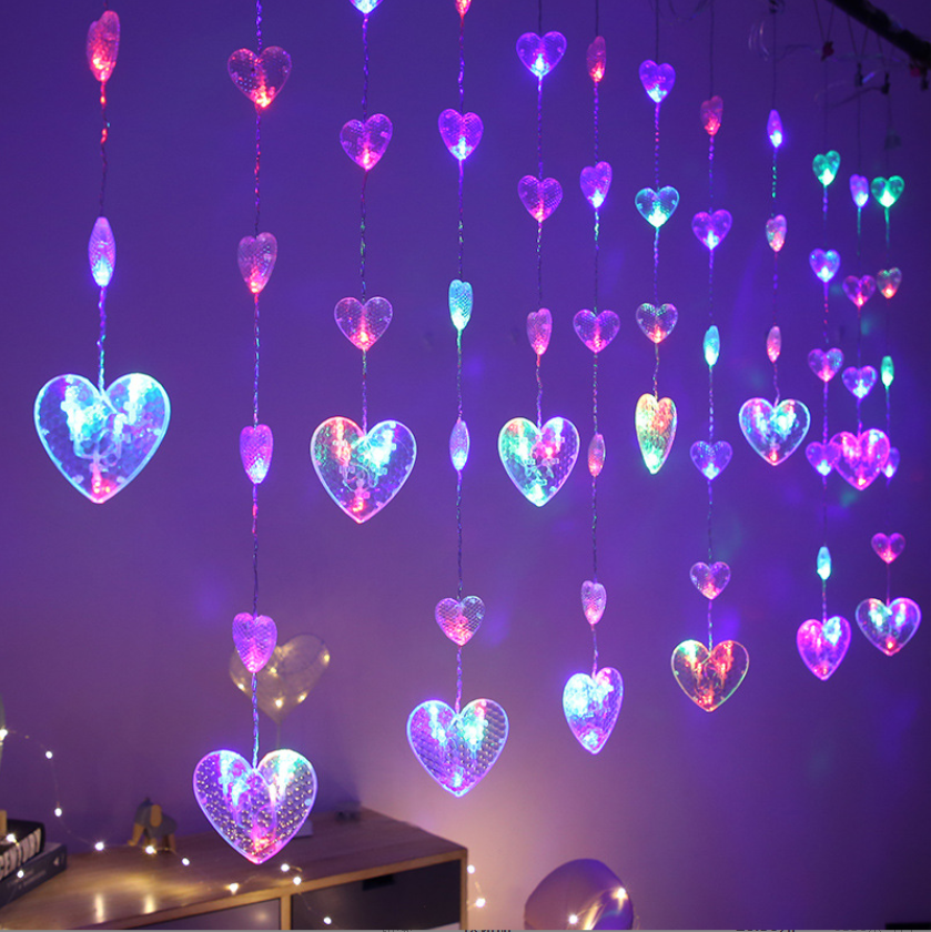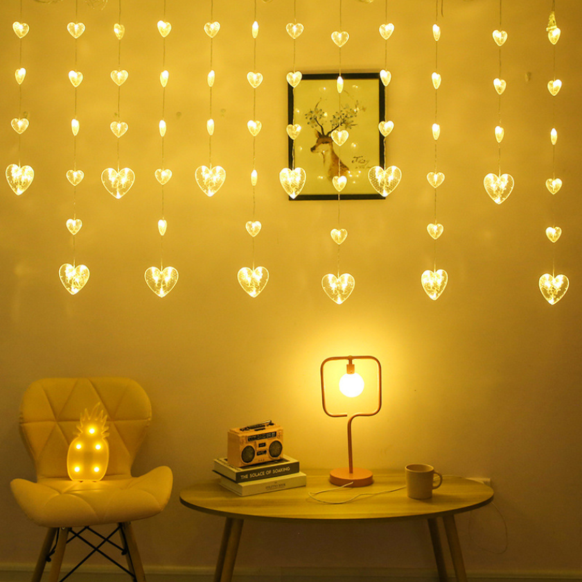These heart-shaped LED curtain lights are designed for versatile decorative purposes. The warm white and multi-color options allow you to create different atmospheres for various occasions.