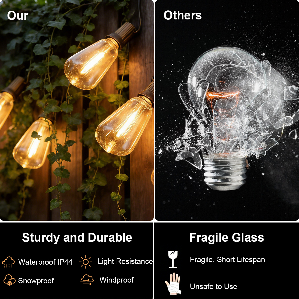 Mounting: Hang the string lights along fences, trees, pergolas, or across your patio. The lights can be hung using hooks or tied to structures.