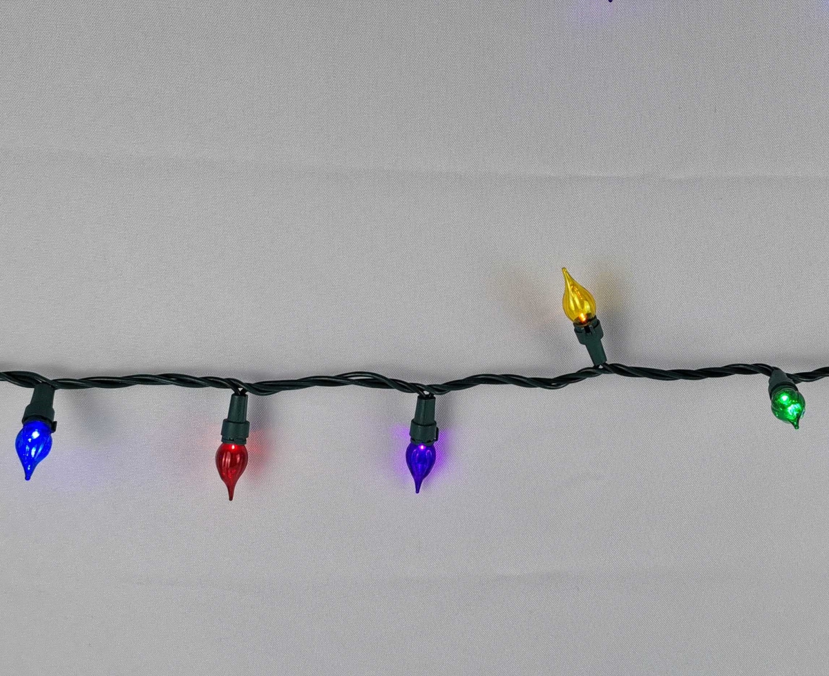 These C3 LED string lights are designed for both indoor and outdoor holiday decoration, featuring 70 multi-color glass bulbs spaced 4 inches apart on a 24-foot green wire. With end-to-end connectivity, you can create a dazzling display for your Christmas tree, garden, patio, or party venue.