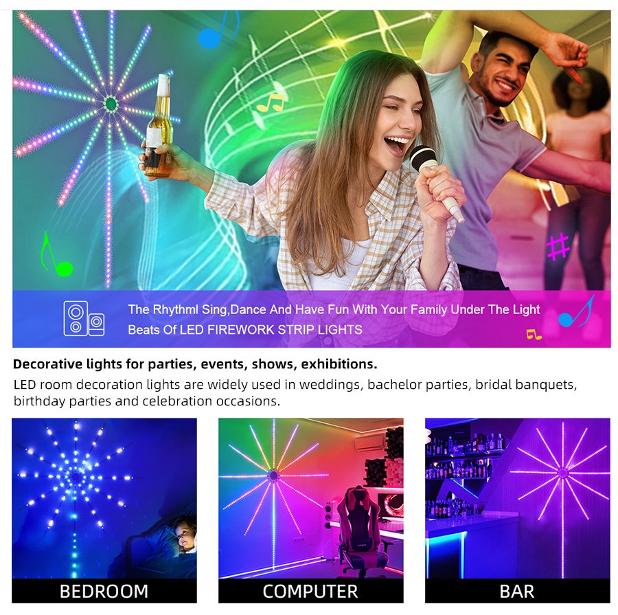 - Holiday & Festival Decoration: Ideal for Christmas, Halloween, weddings, and parties. The firework effect adds a festive touch to Christmas trees, garlands, and home exteriors.