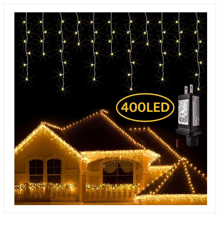 400LED Outdoor Christmas Lights with 8 Patterns, Curtain LED Fairy String Lights for Wedding Party Holiday Decoration