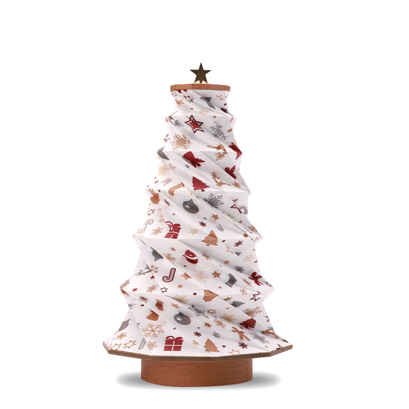 This lamp is designed for versatility and ease of use. Simply unfold the paper "organ" structure to reveal the Christmas tree shape, and press the touch control switch to activate the warm LED light. It can be dimmed to your preferred brightness level.