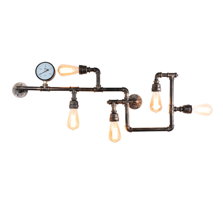 This Industrial Vintage Metal Lamp is a unique lighting fixture that combines steampunk aesthetics with loft-style design. Crafted from iron with a bronze finish, it features a distinctive water pipe style, making it a standout piece for home or commercial decor. The lamp is designed to accommodate E26/E27 base bulbs and emits a warm, soft white light, creating an inviting and cozy atmosphere.