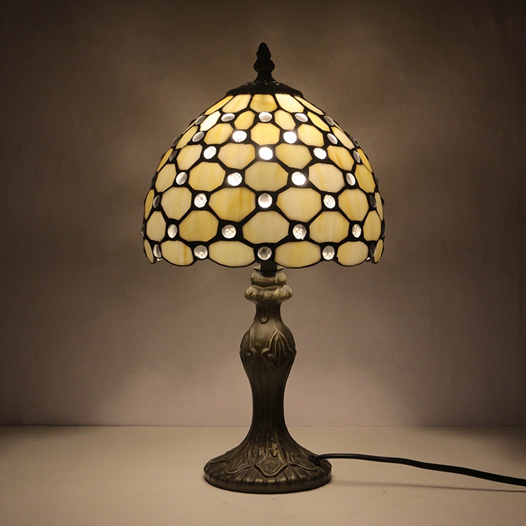 This exquisite 8-inch Tiffany style table lamp, crafted by Huizhou Longhuijing Lighting Technology Co., Ltd., is a stunning piece of functional art for your home. Featuring a handmade stained glass dome shade in a classic Mediterranean design, it emits a soft, warm white glow (2700K) to create a cozy and elegant atmosphere. The lamp is AC powered and uses an E27 LED bulb (not included), making it both energy-efficient and long-lasting. With its brass-colored zinc alloy base and pull-chain control, this lamp is perfect for adding a touch of antique charm to your living room, bedroom, or office.