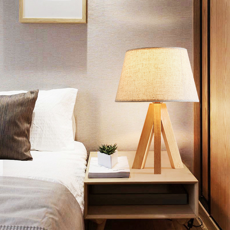 This modern table lamp combines Nordic design with natural wood and soft fabric, creating a warm and inviting ambiance for your living room, bedroom, or homestay. It features an energy-efficient LED light source with a long lifespan and customizable color temperature, making it both a stylish and practical lighting solution.