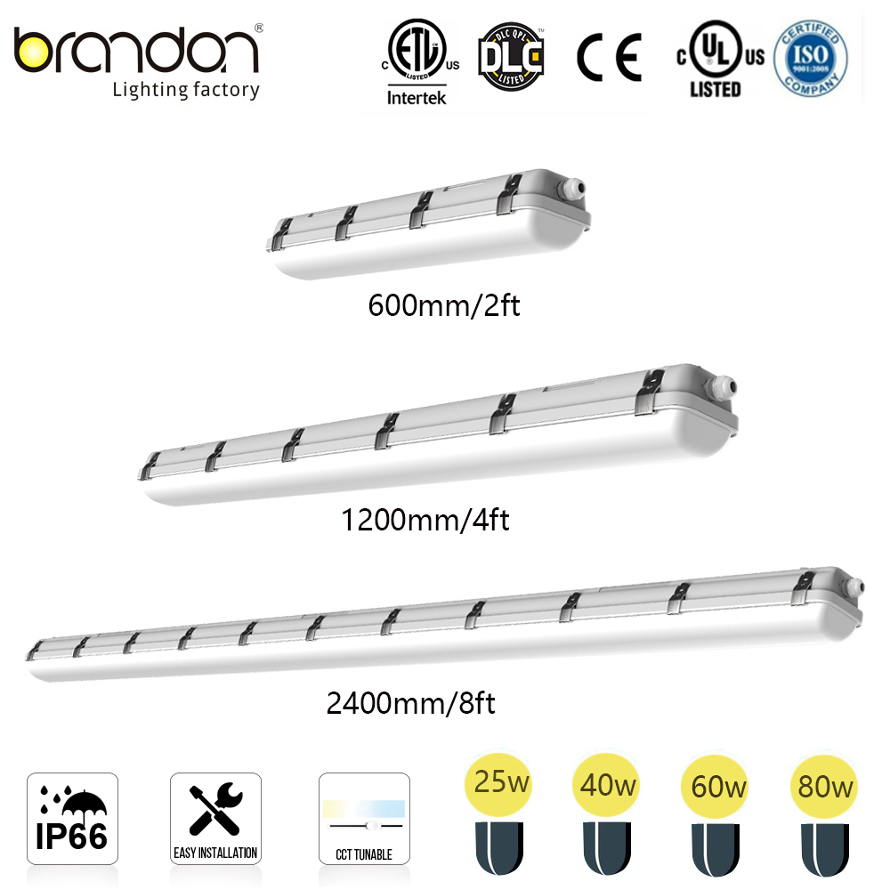 The Brandon MX482H LED Tri-Proof Light is a robust, energy-efficient linear lighting solution designed for demanding industrial and commercial environments. Engineered by Jiangmen Brandon Lighting Co., Ltd., this fixture offers superior protection against water, dust, and impacts, making it an ideal replacement for traditional fluorescent tube lights in warehouses, parking garages, factories, and other harsh-condition areas. With a high luminous efficacy and a long lifespan, it significantly reduces energy consumption and maintenance costs.